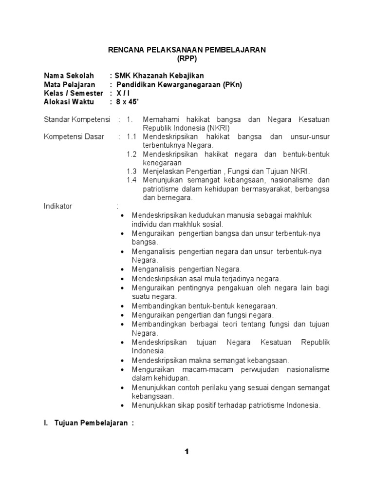 Rpp pkn smk kelas x sem 1
