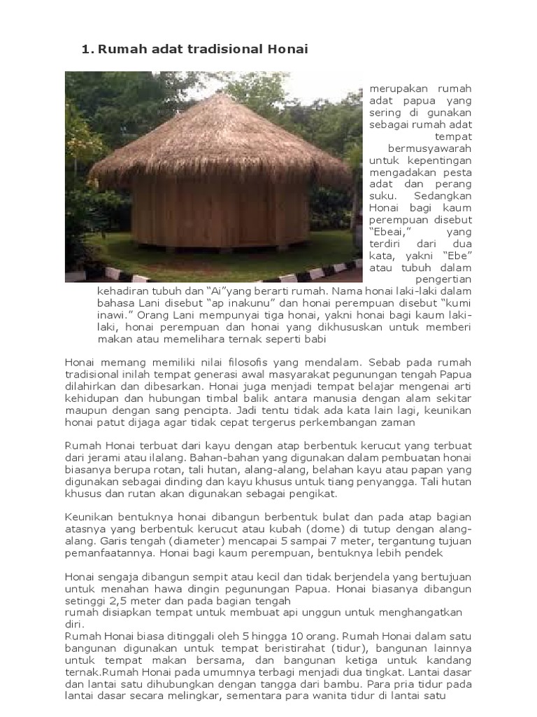DOC) RUMAH ADAT PAPUA RUMAH HONAI | mutiah khairunnisa - Academia.edu