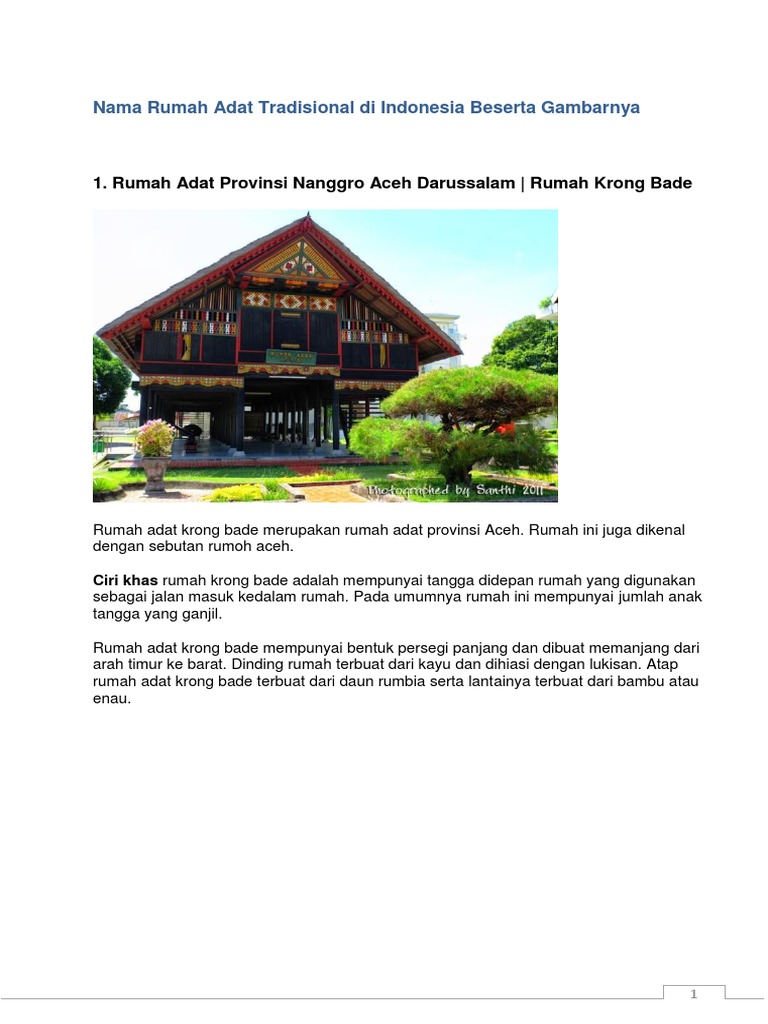 RUMAH ADAT INDONESIA.docx - 1 Rumah Adat Provinsi Nanggroe Aceh …