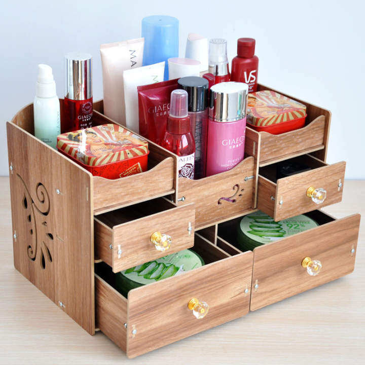 Kotak penyimpanan kosmetik yang besar kapasiti rak kayu korea sederhana isi rumah pelbagai lapisan meja penamat kotak penamat | Lazada