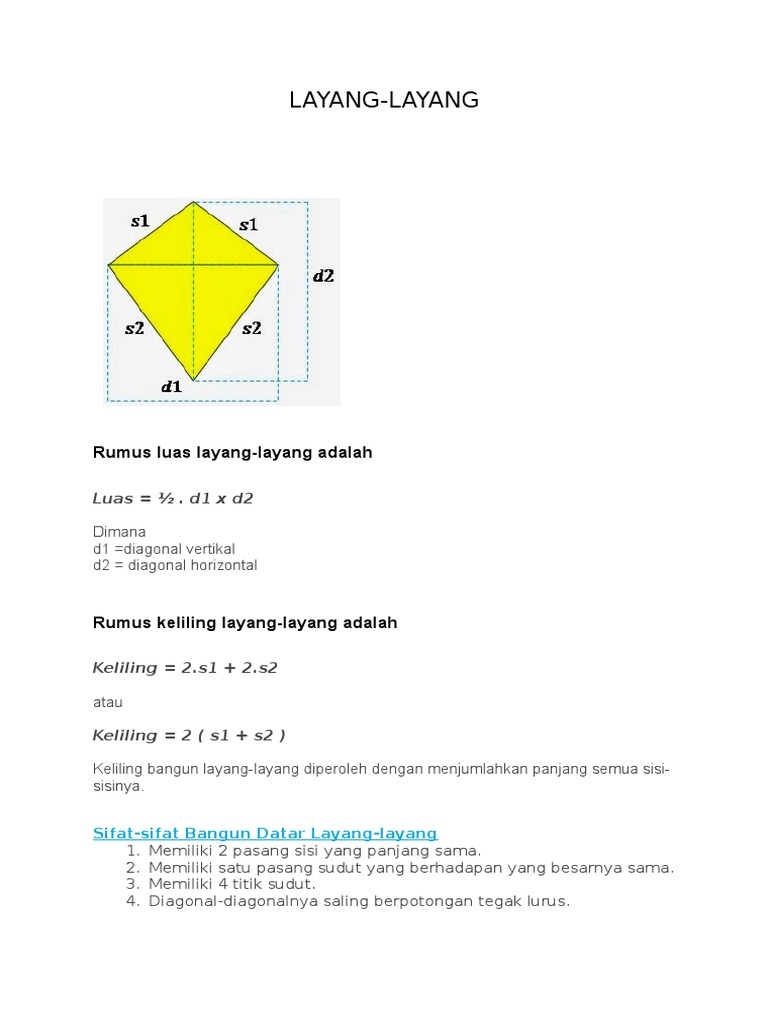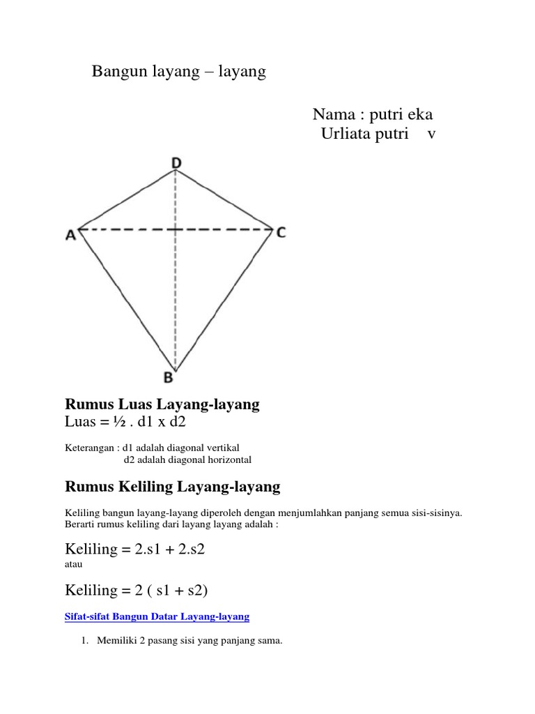 Rumus Luas Dan Keliling Layang - Layang Dan Contoh Soal - Cilacap Klik