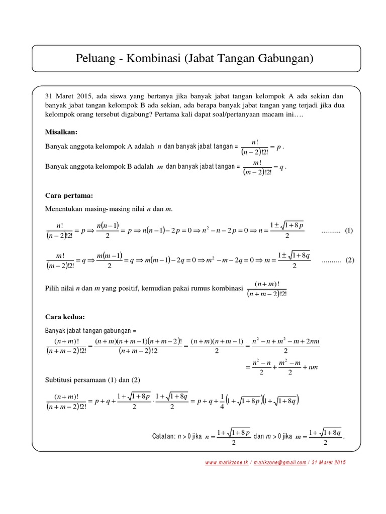 BELAJAR : Permutasi Dan Kombinasi Peluang Matematika