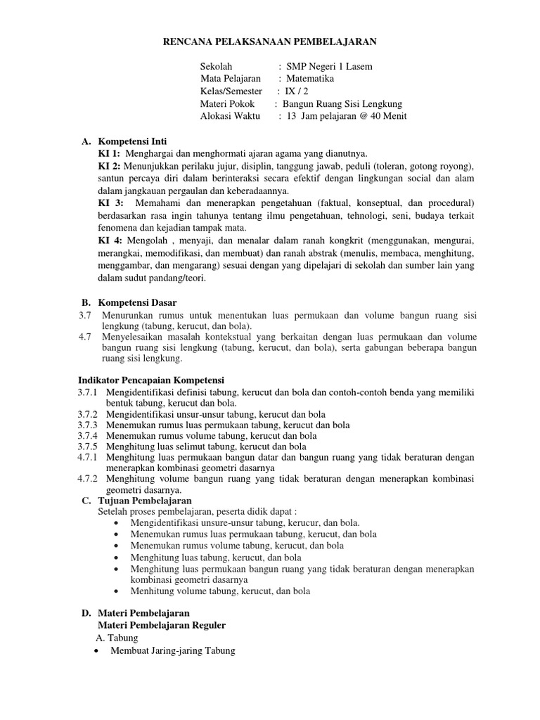 Rpp Kd 2.2 b (Bangun Ruang Sisi Lengkung - Lp. Kerucut) - [DOCX …