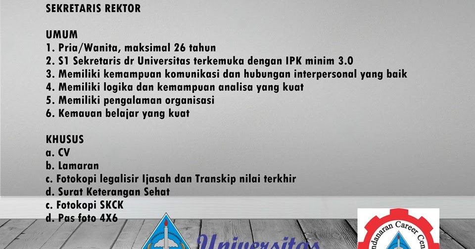 Lowongan pekerjan sekretaris rektor di Semarang ~ Loker Terbaru di Semarang dan Sekitarnya