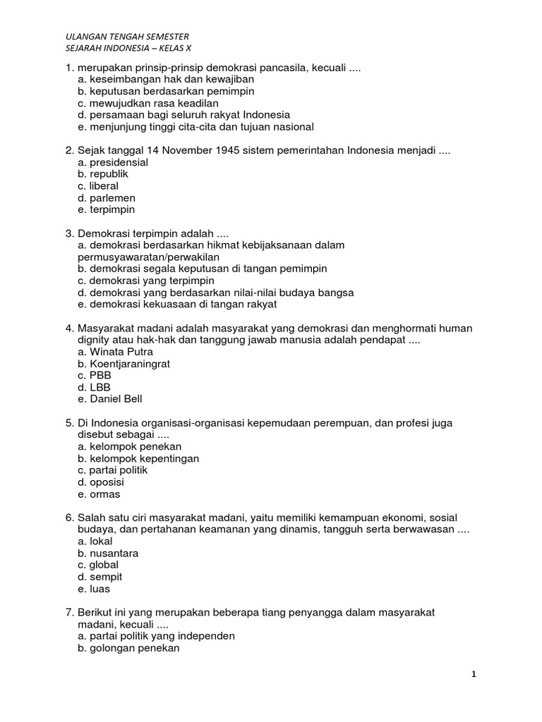 Ulangan Tengah Semester Sejarah Indonesia – Kelas X