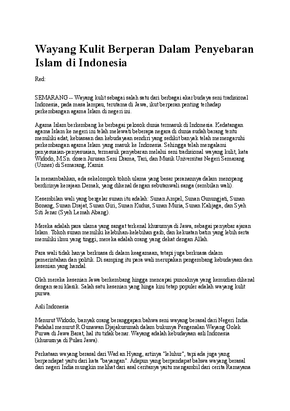 DOC) Wayang Kulit Berperan Dalam Penyebaran Islam di Indonesia | Adri Muzakka - Academia.edu