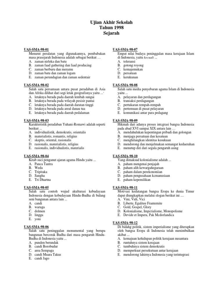 Soal Sejarah dan Pembahasanya