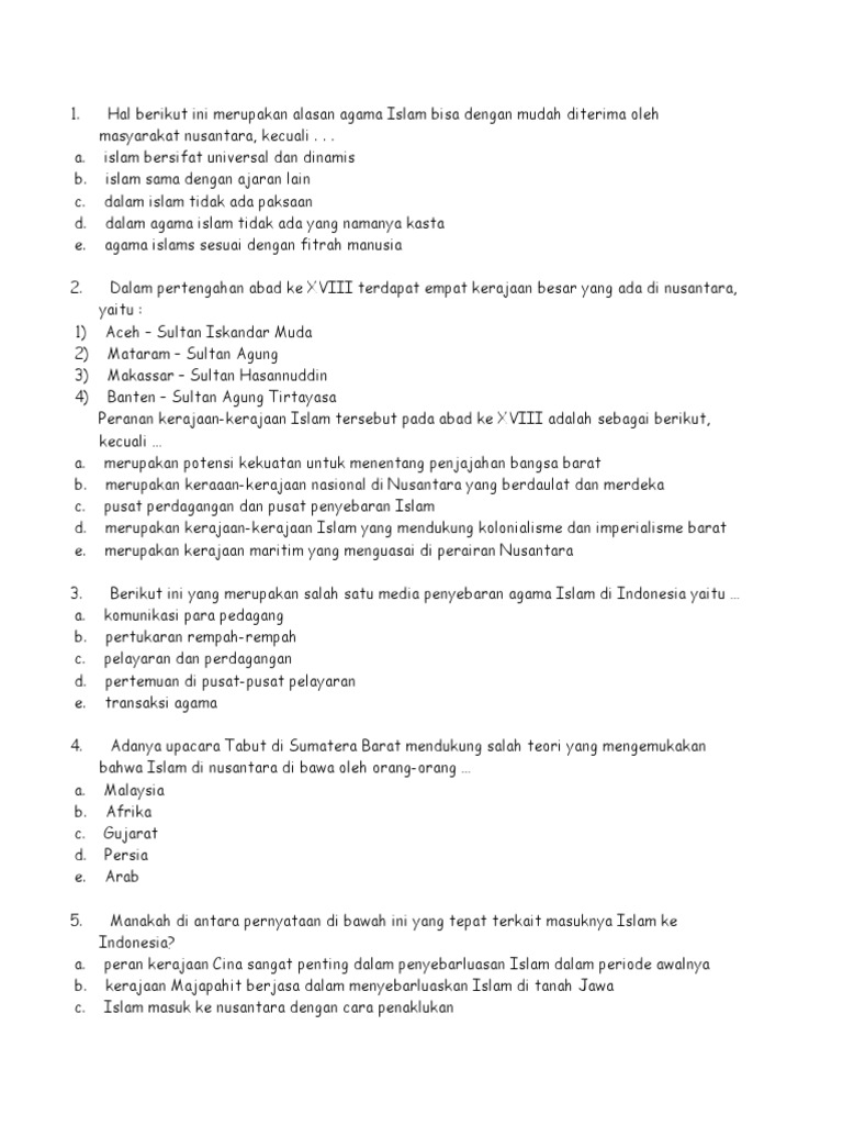 130 Contoh Soal Perkembangan Islam & Kerajaan Islam di Indonesia (Pilihan Ganda & Essay)