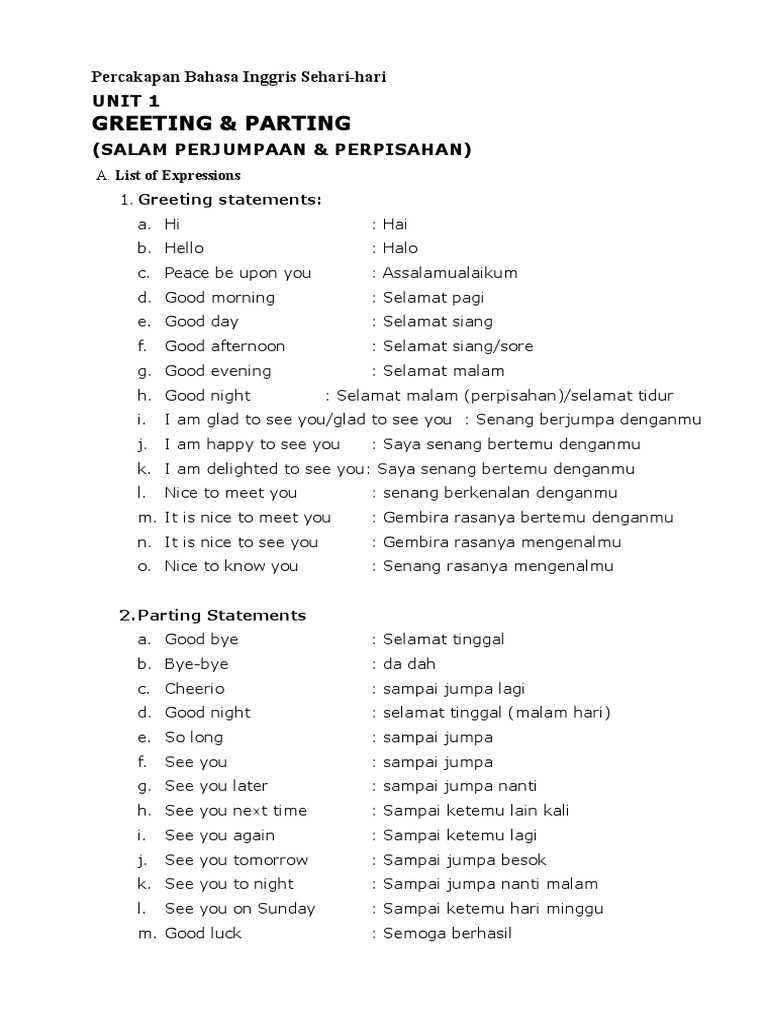 Percakapan Salam Pertemuan dan Perpisahan | Contoh Dialog B. Inggris