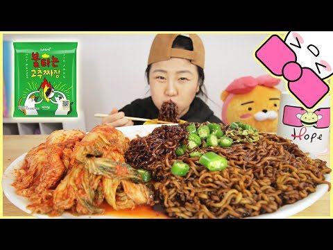 mukbang] Samyang cheese hot spicy chicken + mozzarella cheese + pringles cheesy cheese - YouTube