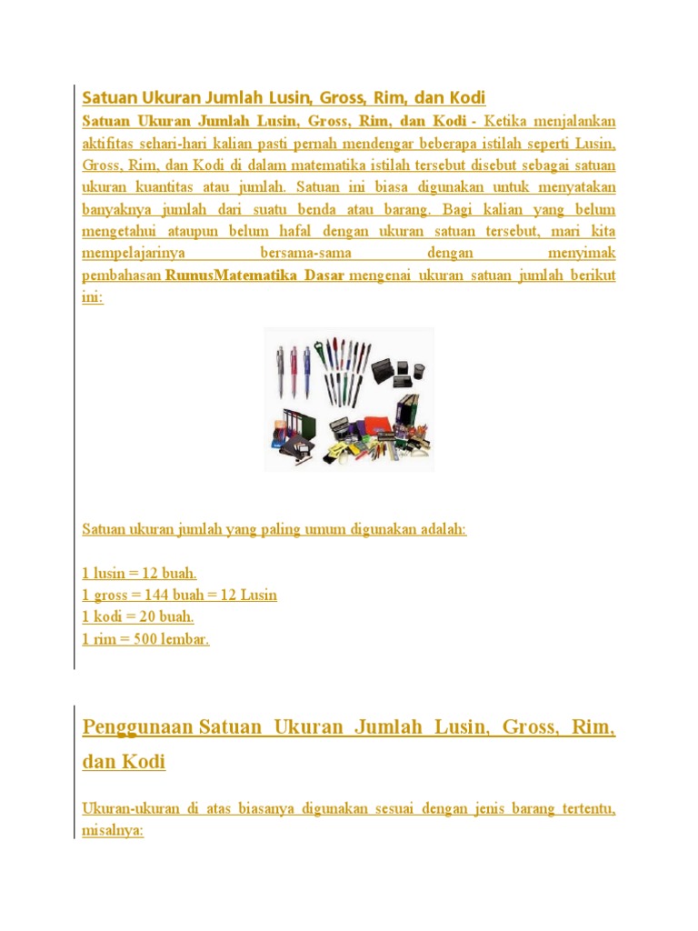 Satuan Ukuran Jumlah Lusin, Gross, Rim, dan Kodi