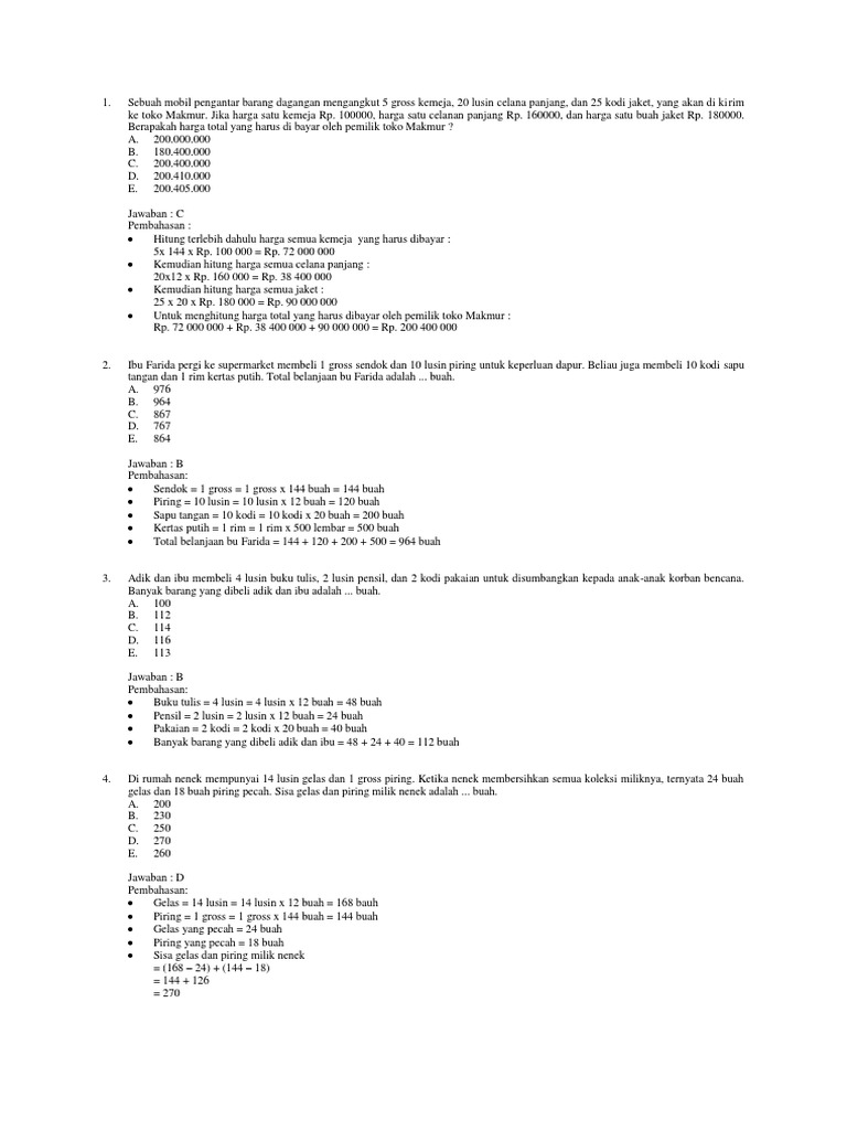 Kumpulan Soal pelajaran 10: Contoh Soal Lusin, Kodi, Rim, Dan Gross
