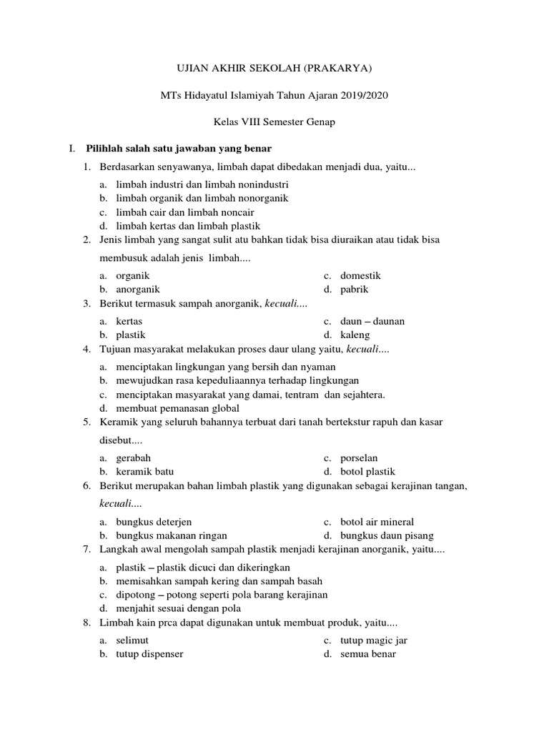 Rinto Kusmiran: SOAL PTS PRAKARYA KELAS VIII SMP SEMESTER GENAP …