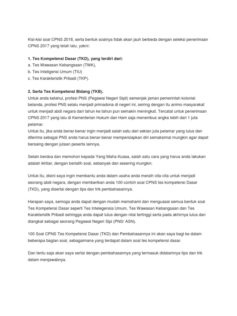 100 Contoh Soal SKD CAT CPNS 2019 (TWK, TIU, & TKP) dan …