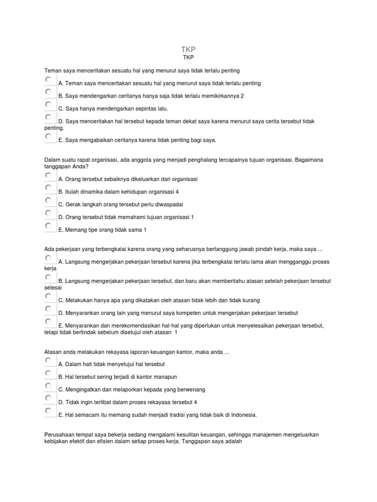 Contoh Soal CPNS TKP - Aspek Kemampuan Mengendalikan Diri - Buku …