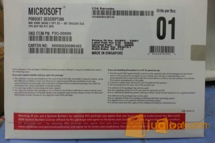 Windows 7 basic 32/64bit ori SG bergaransi valid seapa microsoft …