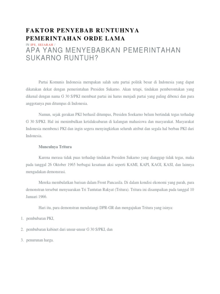 Faktor Penyebab Runtuhnya Pemerintahan Orde Lama
