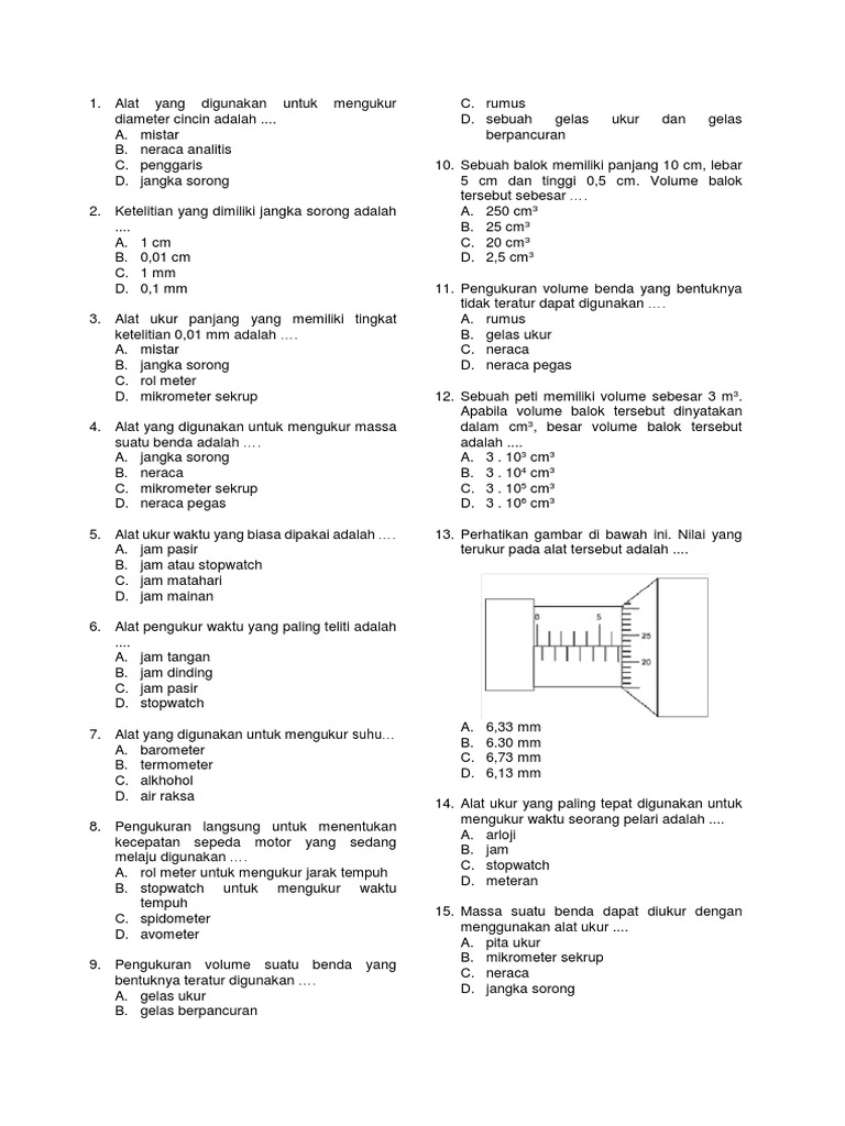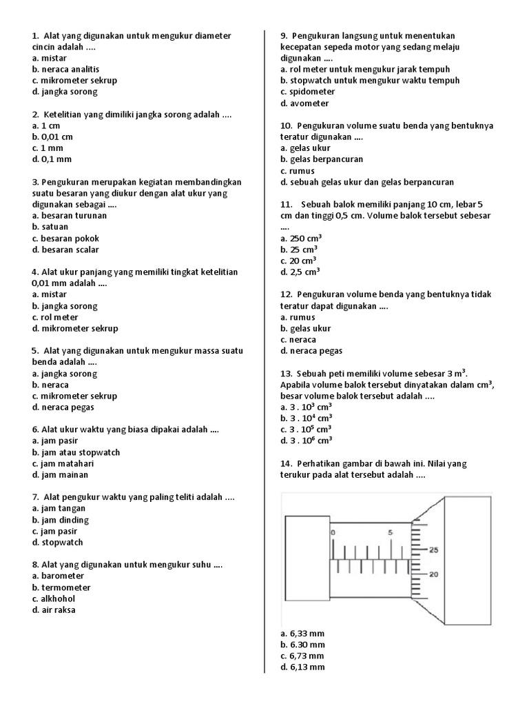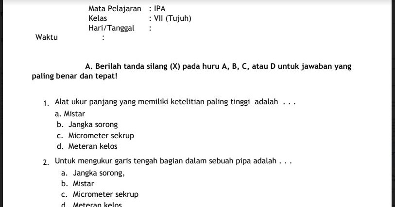 Soal Pilihan Ganda Fisika SMP Kelas 7 Tentang Pengukuran Dan Alat Ukur