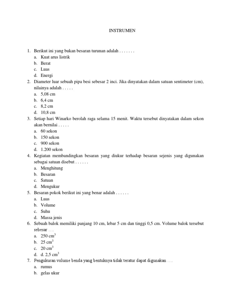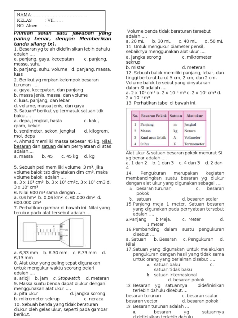 Soal Pengukuran 1 IPA SMP Kelas VII - Qassampedia.com