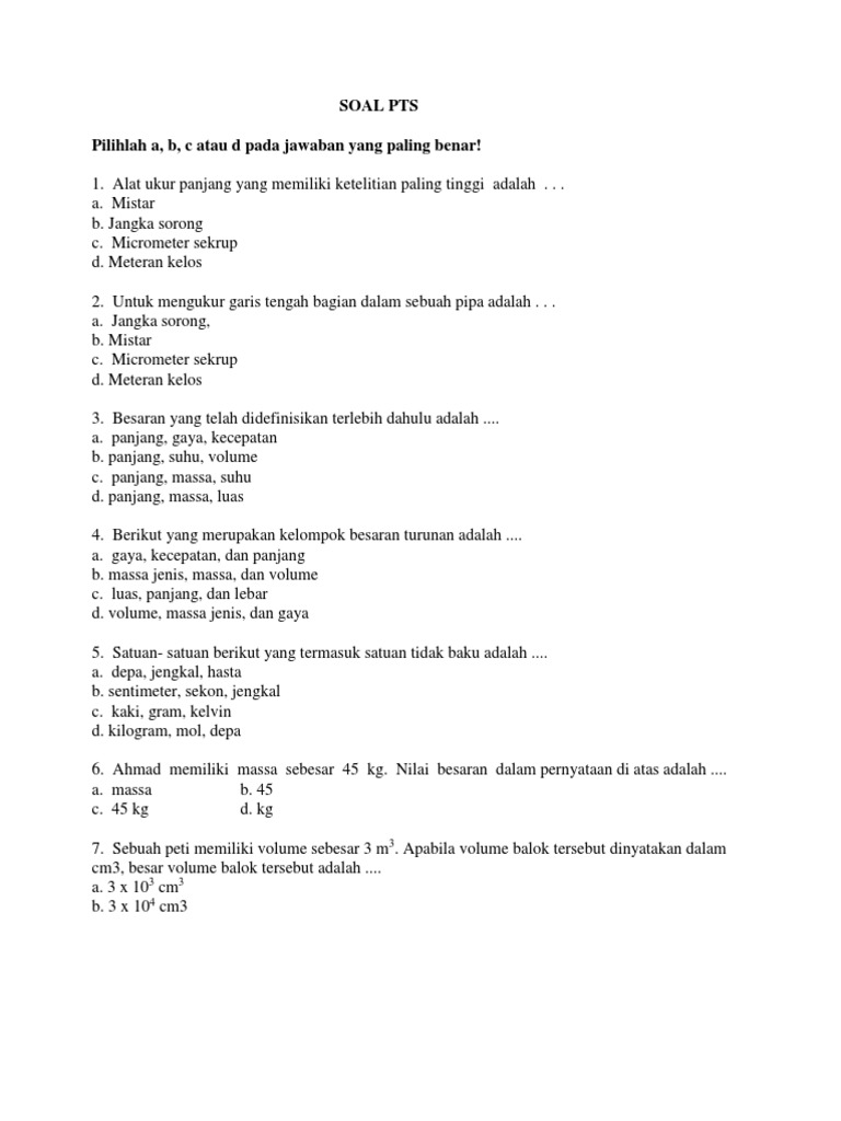 Soal Pts Pilihlah a, b, c atau d pada jawaban yang paling benar!