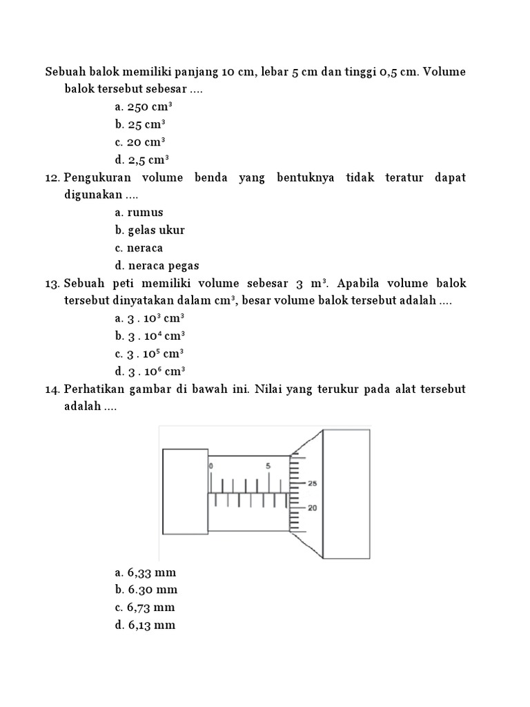 13. Sebuah peti memiliki volume sebesar 3 m³ . Apabila volume …