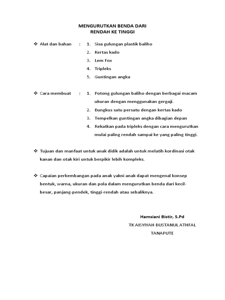 Mengurutkan Benda Dari