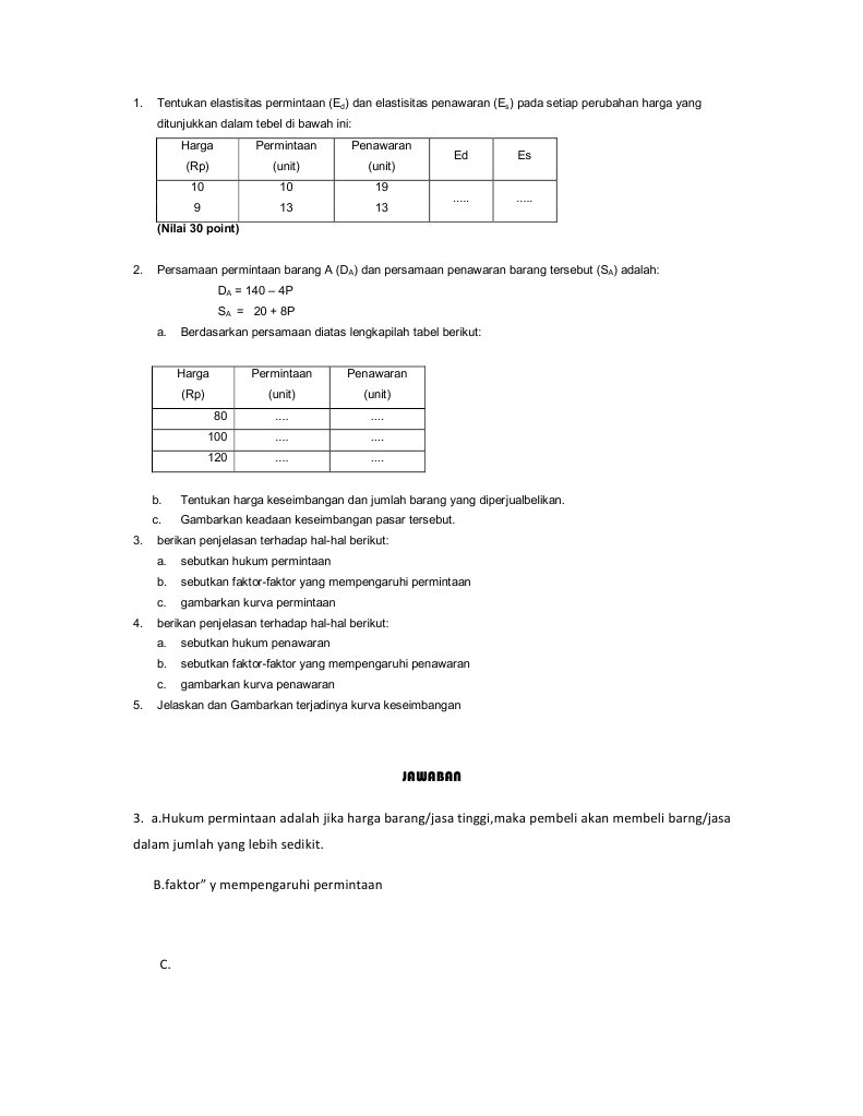1. Jelaskan Pengerian dari permintaan! 2. Sebutkan Faktor-faktor …