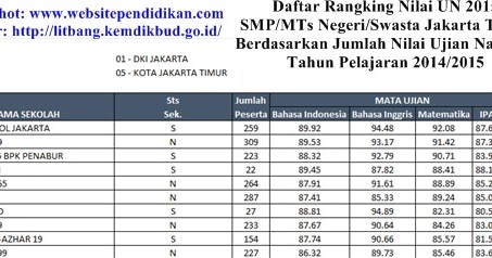 Daftar SMP/MTs dengan Perolehan Hasil UN Terbaik di DKI Jakarta …