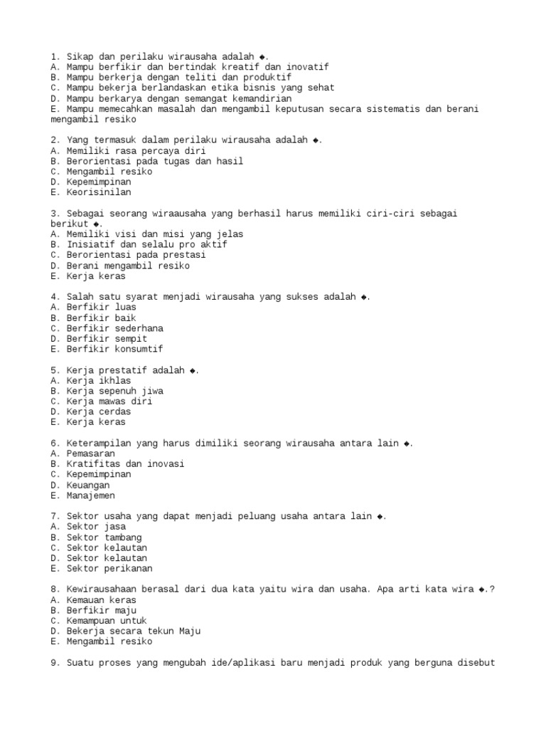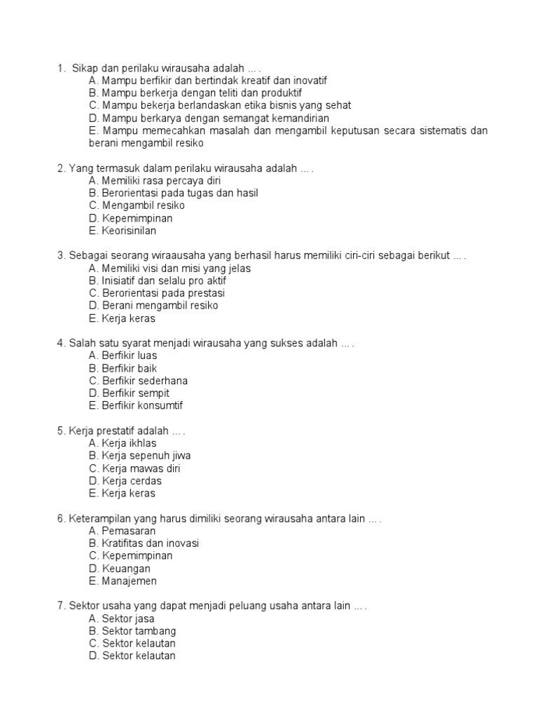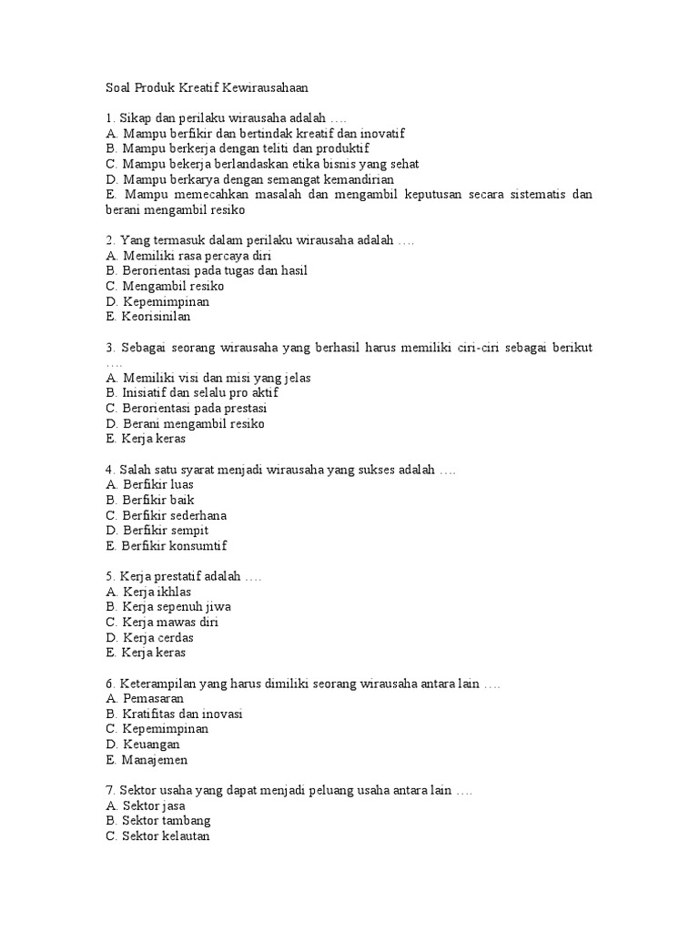 Soal Produk Kreatif Kewirausahaan agtr