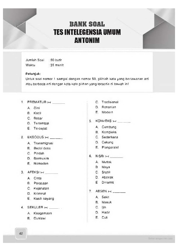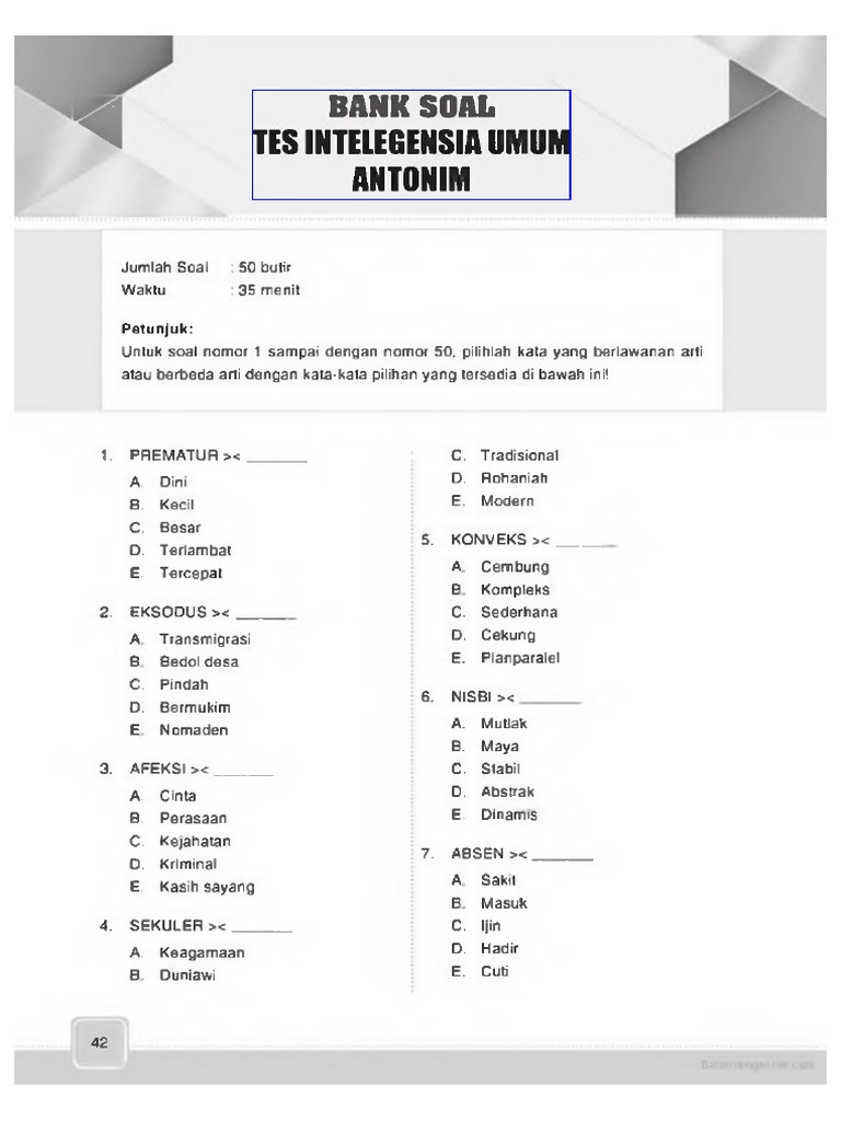 Soal-soal Psikotes Kemampuan Verbal: Sinonim - Antonim - Analogi …