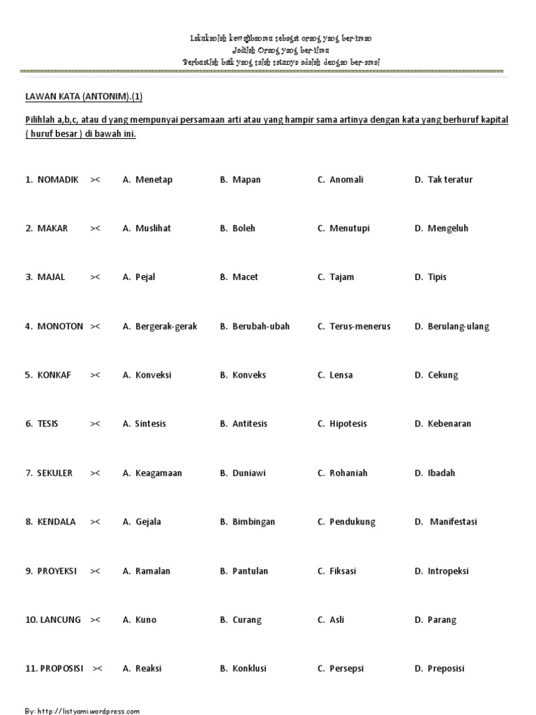 100+ Contoh Soal CPNS 2019 Tes Antonim Kata (Lawan Kata) - ABI …