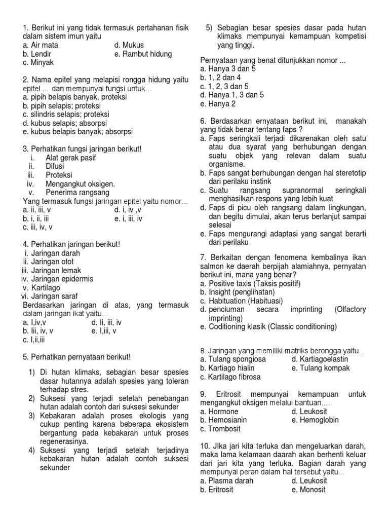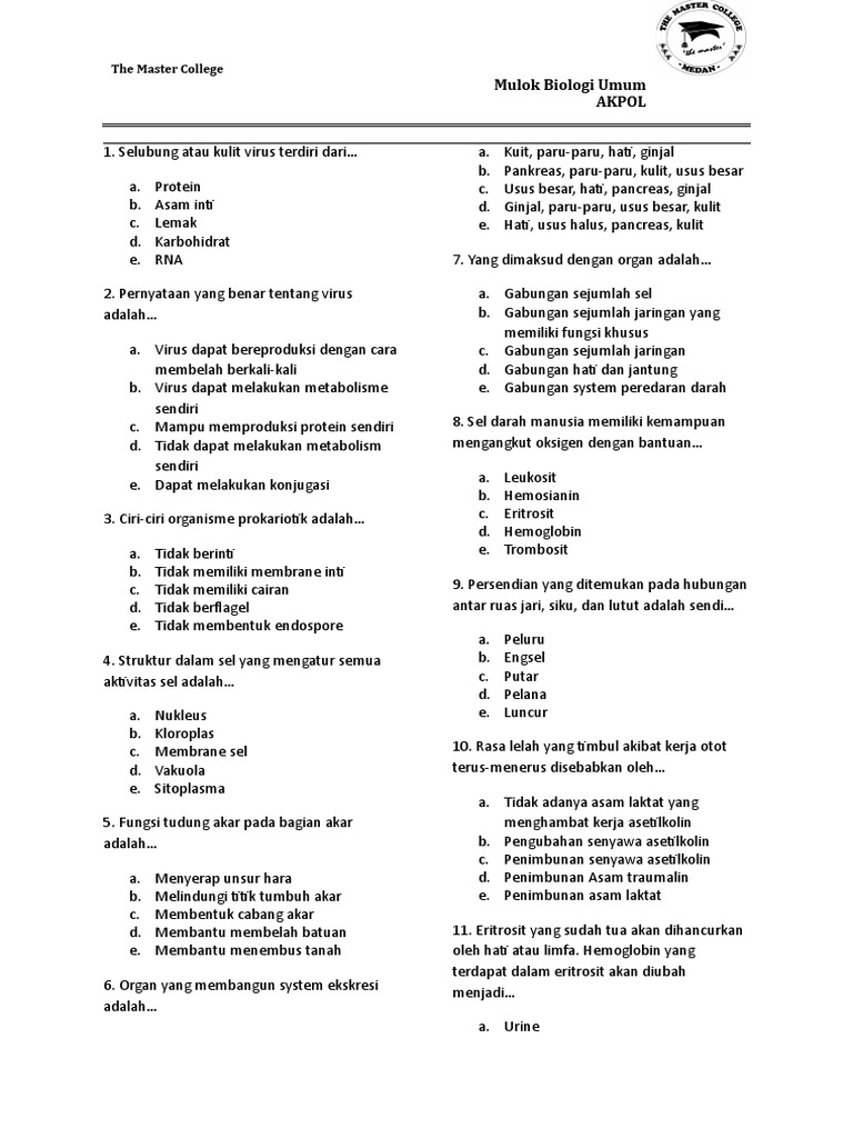 130 SOAL BIOLOGI SEL DAN JARINGAN | Biologi
