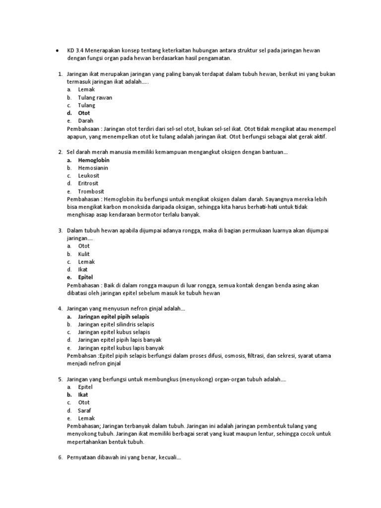 Soal Biologi dan Pembahasan Tentang Jaringan Hewan | Biologi
