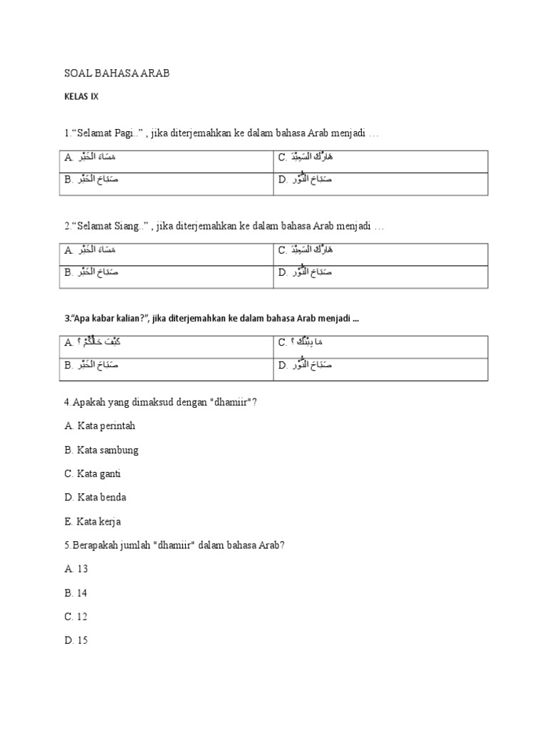 Soal ulangan bahasa arab kelas xi sma - [DOC Document]