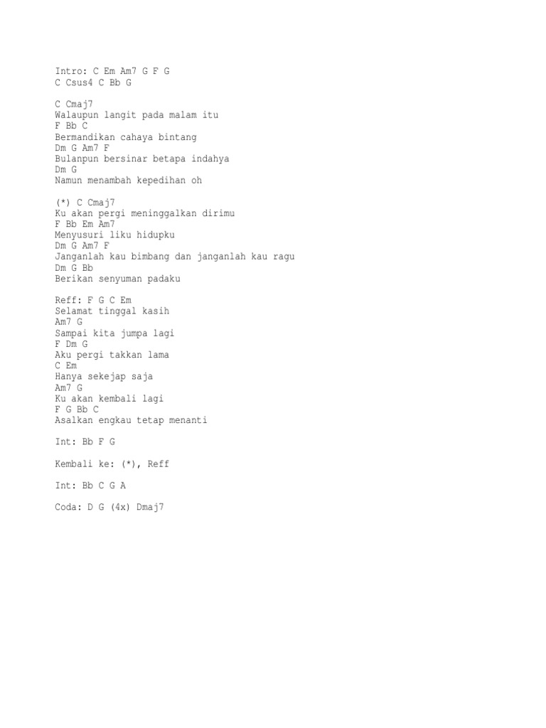 Selamat Tinggal Kasih Sampai Kita Jumpa Lagi, Ini Chord Kunci …