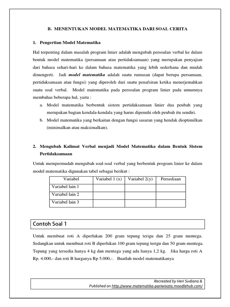 Contoh Soal Program Linear : Membuat Model Matematika dari Suatu …