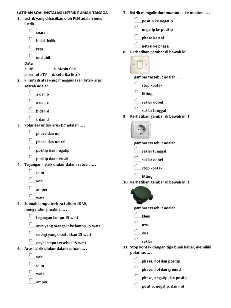 Latihan Soal Instalasi Listrik Rumah Tangga