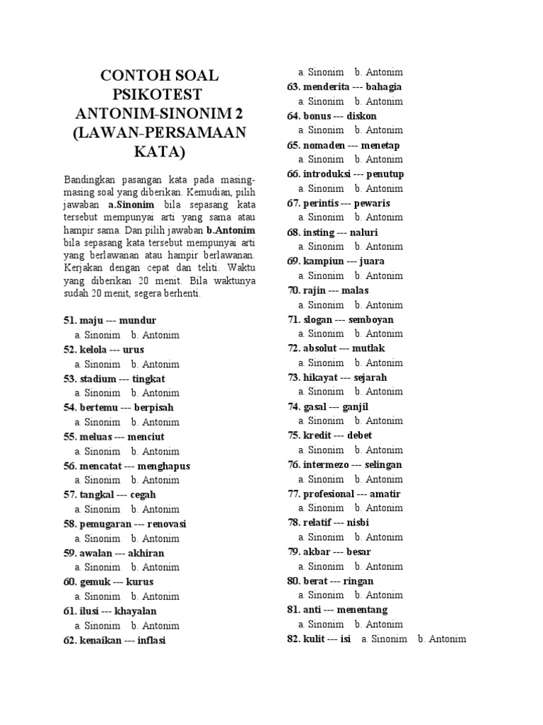 DOC) Kemampuan Verbal Sinonim/Persamaan Kata | lusanro siburian …