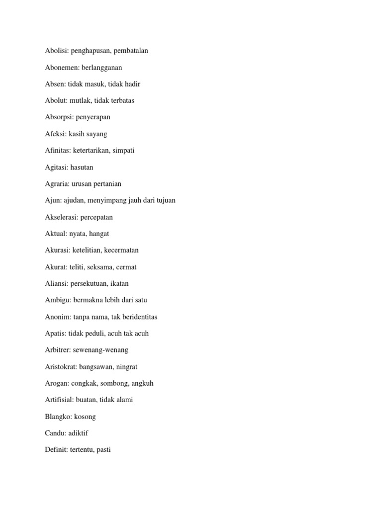 Sinonim - SINONIM Abrasi=Pengikisan Absah=Sah Absolut=Mutlak …