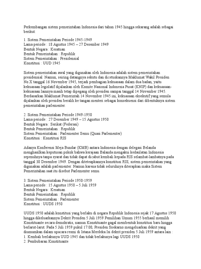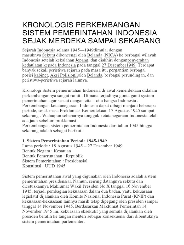 Kronologis Perkembangan Sistem Pemerintahan Indonesia Sejak …
