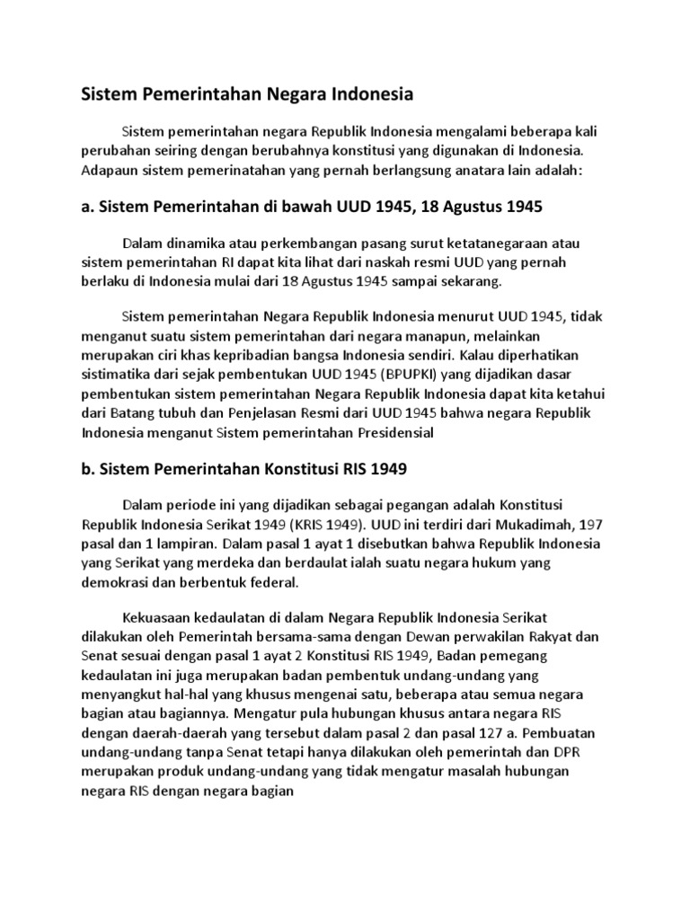 DOC) PELAKSANAAN SISTEM PEMERINTAHAN DI INDONESIA | herlyana …