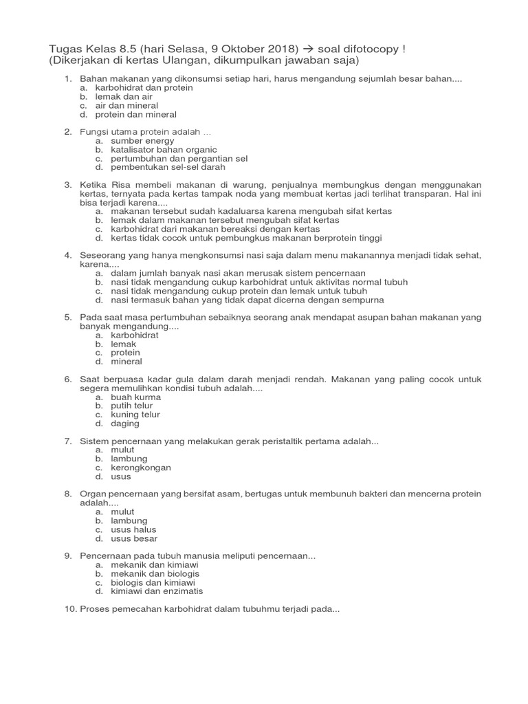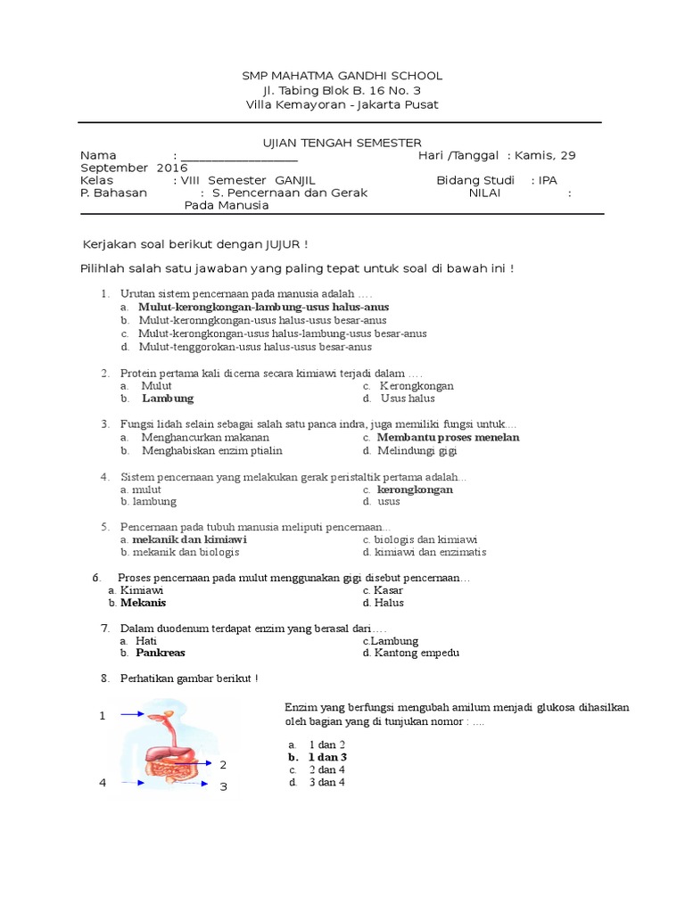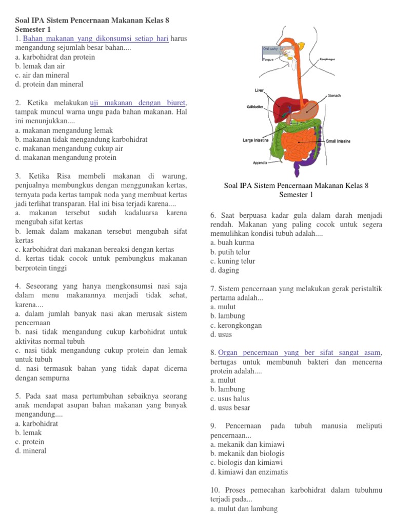 Soal IPA Sistem Pencernaan Makanan Kelas 8 Semester 1.docx - Soal …