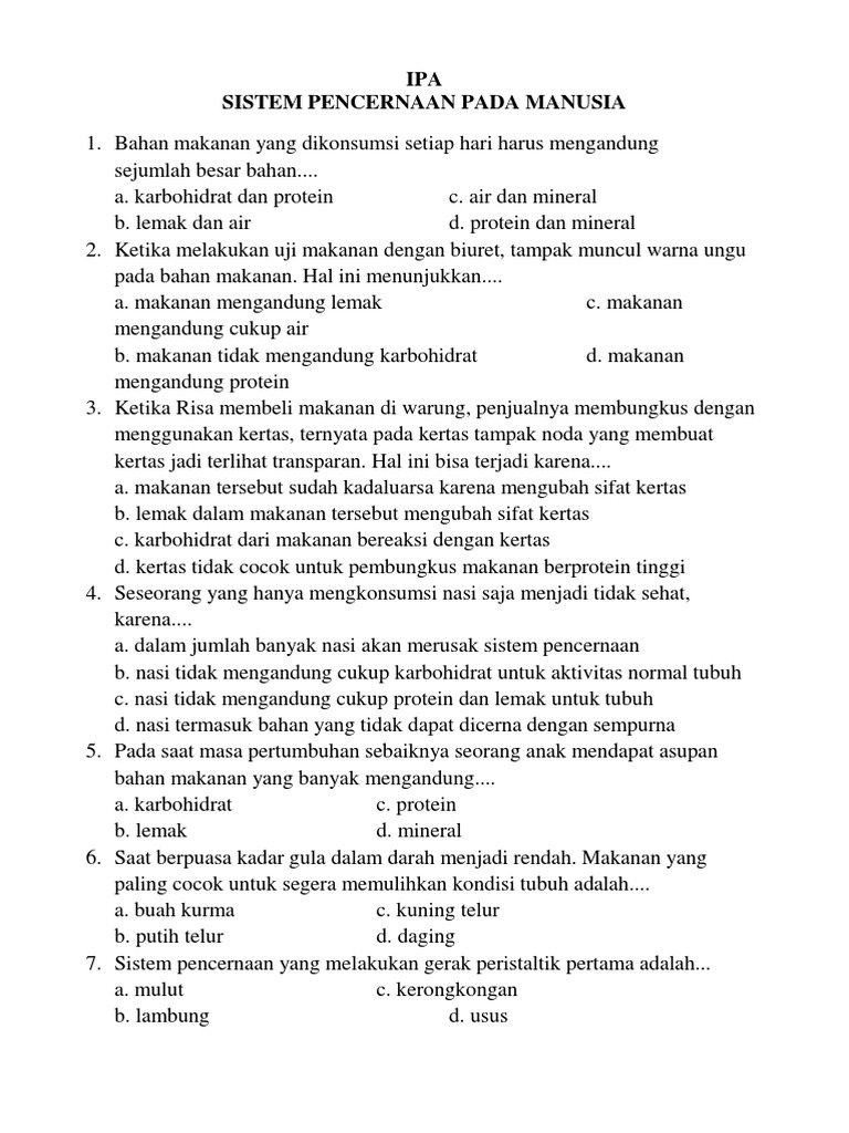 Soal Ipa Kelas 8 Pencernaan