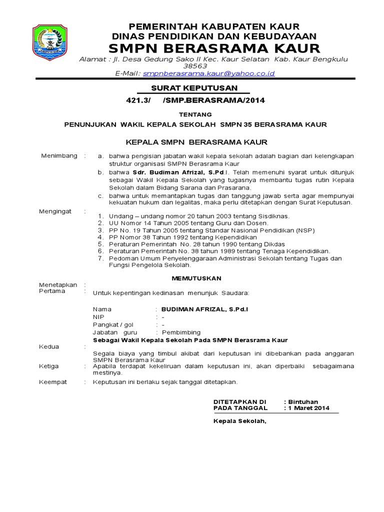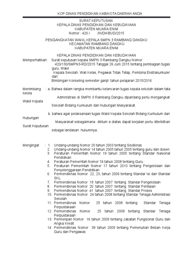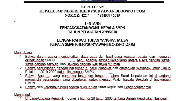 Contoh SK Wakil Kepala Sekolah SMP Terbaru - Kherysuryawan.id