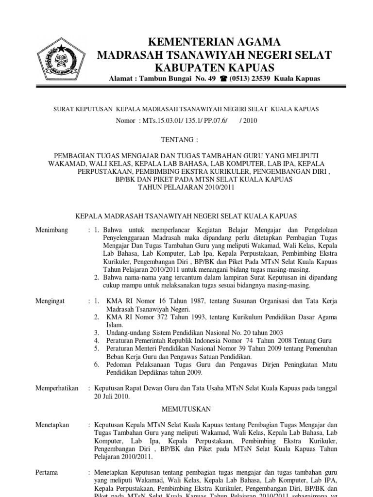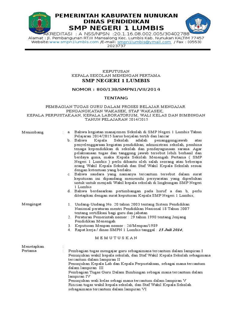 Contoh sk pembagian tugas guru format terbaru 2015 + jumlah siswa per…