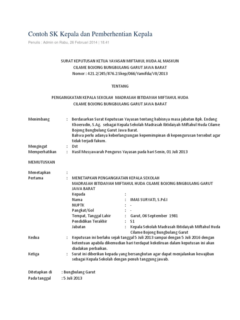 Contoh Sk Kepala Sekolah - Dunia Sosial