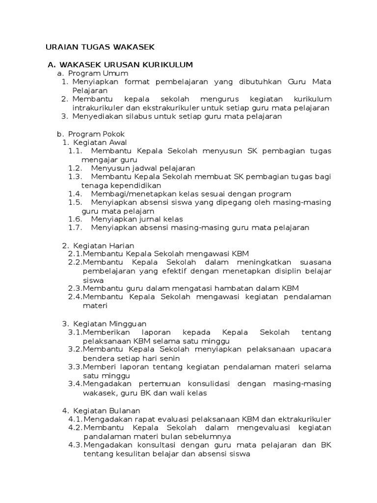 Contoh Program Kerja Wakil Kepala Sekolah Bidang Kurikulum Smp …