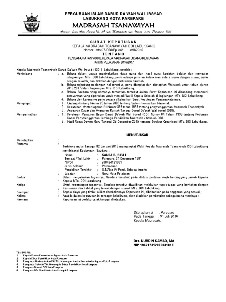 Sk Pengangkatan Wakil Kepala Madrasah - Dunia Sosial