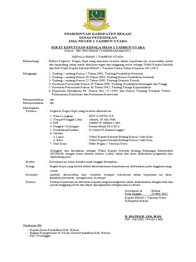 Doc] Download Contoh Surat Keputusan (SK) Kepala Sekolah