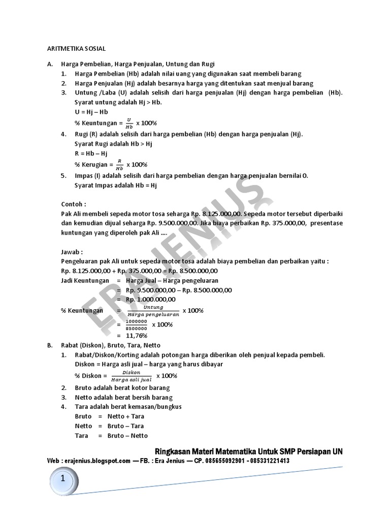 Contoh Soal Aritmatika Sosial Smp Kelas 9 - Cute766